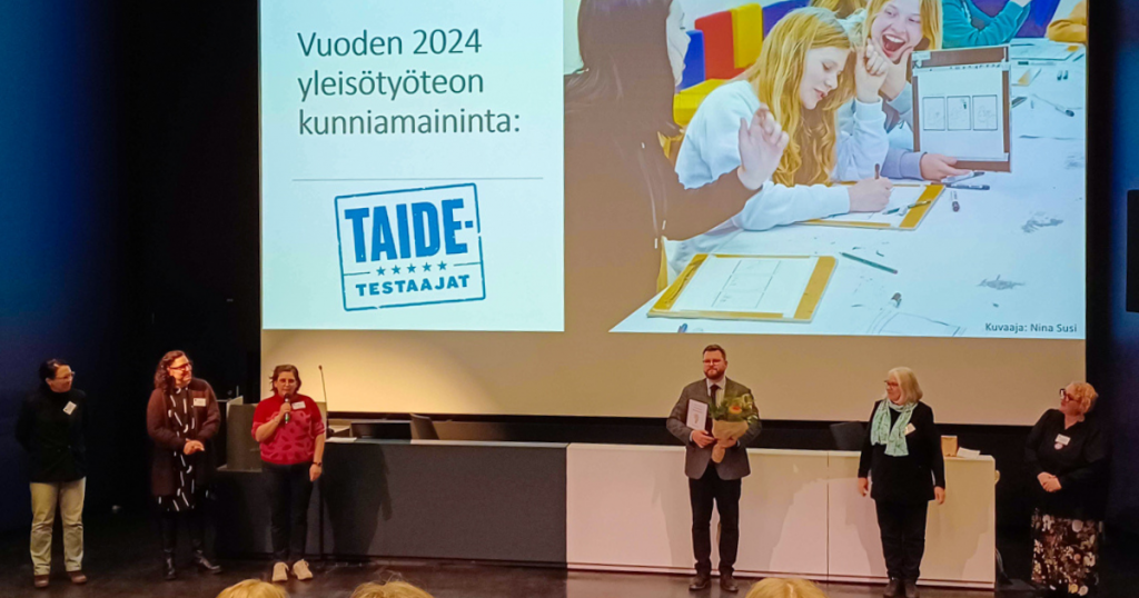 Taidetestaajat-ohjelmalle vuoden yleisötyöteko 2024 -tunnustuspalkinnon kunniamaininta